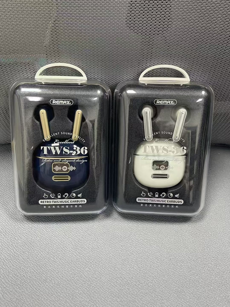The Remax TWS-36 True Wireless Earbuds offer a sleek, modern listening experience with reliable wireless performance.